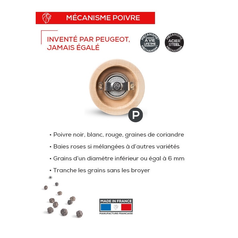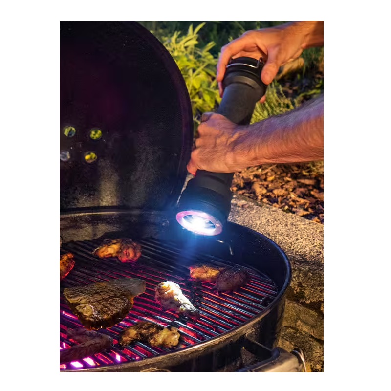 BBQ Moulin à poivre en bois spécial barbecue, graphite, 30 cm - 12in Peugeot innove dans l’univers du BBQ et présente son moulin à poivre manuel avec éclairage spécialement conçu pour un usage outdoor. (Ne pas exposer au intempéries et différences de températures)